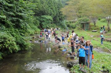 町では、社会を明るくする運動の一環として、「親子ふれあいマス釣り大会」を、自然休養村「さかな園」で実施しており、町内の大勢の親子が参加しました。