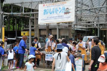釣りが終わった後は、更生保護女性会の皆さんが作った豚汁を、親子の皆さんに振る舞いました。