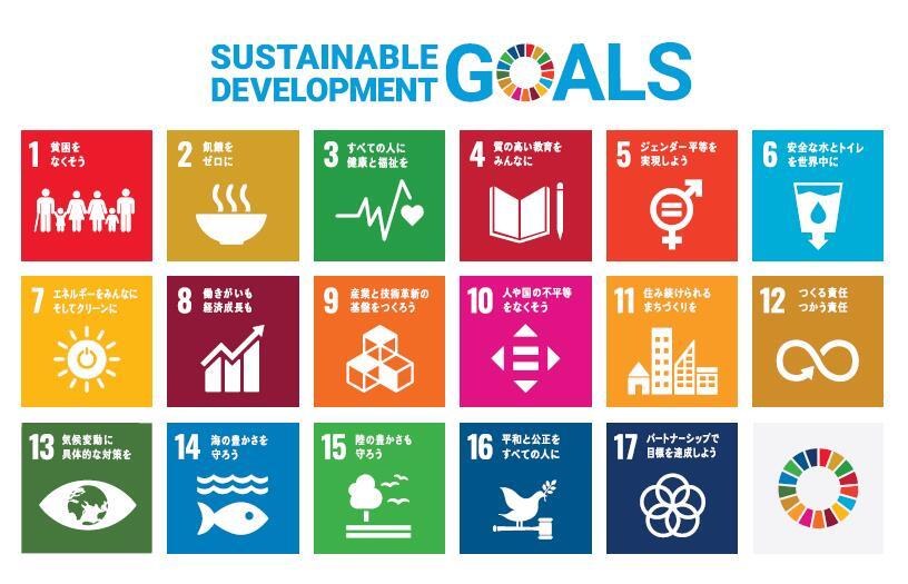 持続可能な開発目標(SDGs:Sustainable Development Goals)とは、2030年までに持続可能でよりよい世界を目指す国際目標です。17の目標から構成され、地球上の「誰一人取り残さない」ことを誓っています。
