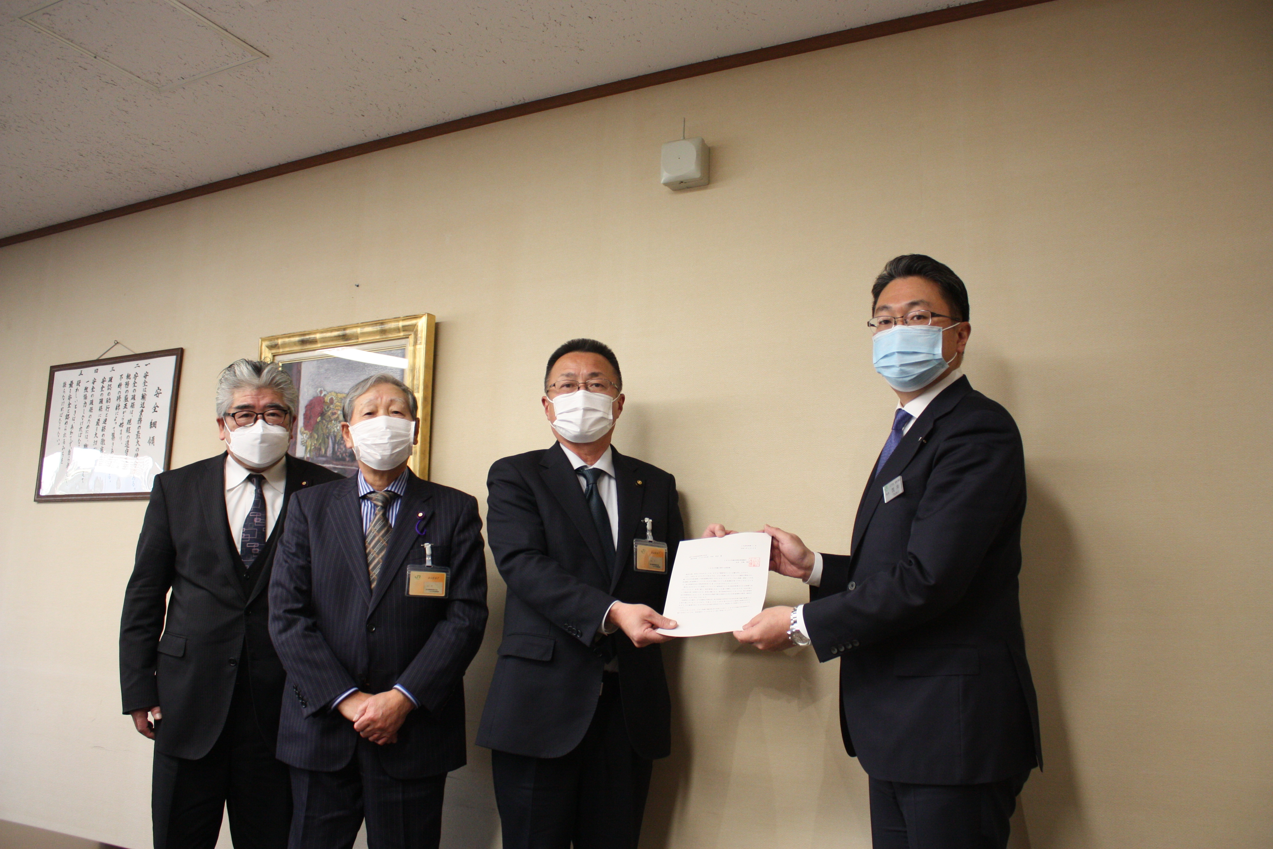 JR五日市線改善促進協議会(あきる野市、日の出町、檜原村の議長及び議員で構成)は、令和4年1月24日に、中嶋博幸会長(あきる野市議会議長)、小玉正義副会長(日の出町議会議長)、山嵜源重監事(檜原村議会議長)の3名で東日本旅客鉄道株式会社八王子支社を訪れ、JR五日市線に関する要望書を提出し、JR五日市線の直通運転の取りやめについて、再度検討するよう強く要望しました。