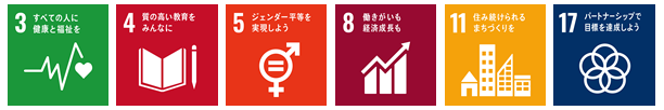 「関わる全ての人がハッピーに!~すべての人の幸せ創り~」が大久野保育園のパーパスと考え、さまざまな実践を行なっています。ゴール4・3では「質の高い就学前教育」&「一人ひとりに寄り添うケアや発達支援」を実践しています。ゴール8・5では「女性が働きやすい環境」&「やりがいのある職場」を推進し、職員が輝ける園を創っています。そして、関わる方々とのパートナーシップを強化し、「大久野って素敵な地域」とみんなが誇れるような地域社会の形成を目指しています。