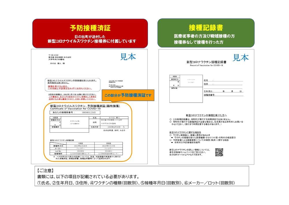 ※ 転出入等の事情がある方は、日の出町に住民登録があった接種分のみの発行となります。