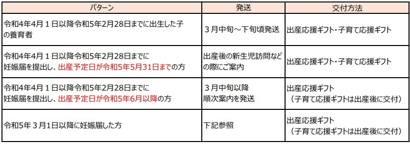 (2) 令和4年4月1日以降令和5年2月28日までに妊娠届を提出した妊婦(出産応援ギフト)