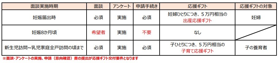 (妊娠時・妊娠期・出産時の計3回の面談及びアンケートの実施)