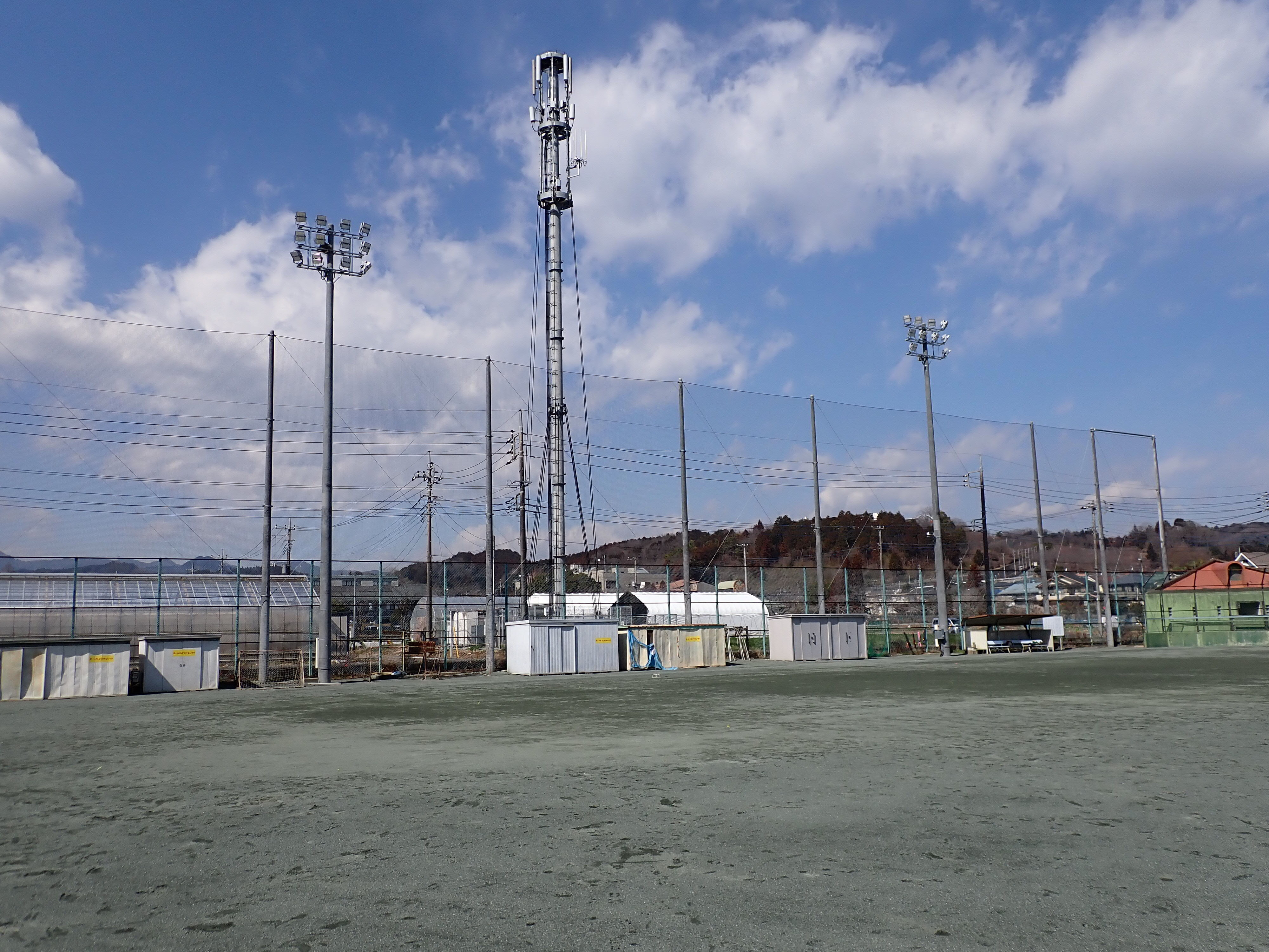 日の出町では、スポーツ振興くじ助成金を活用して、老朽化した日の出町民グランドの夜間照明設備のLED化及び防球ネットの改修を行いました。
