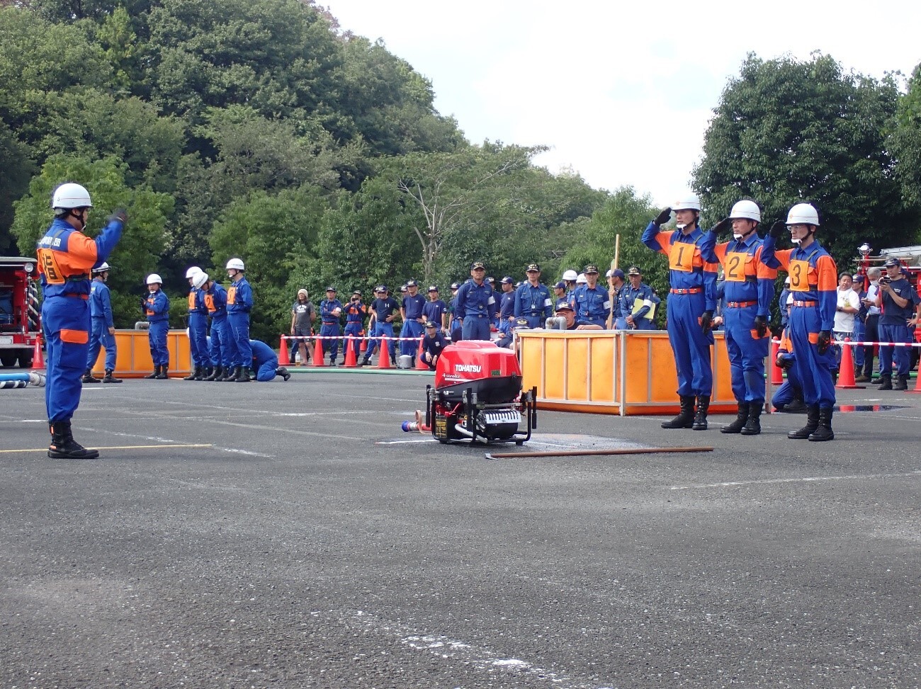 西多摩8市町村の消防団の代表隊による、消防用機械器具である消防ポンプ自動車・小型動力ポンプの操作技術を競う大会です。
