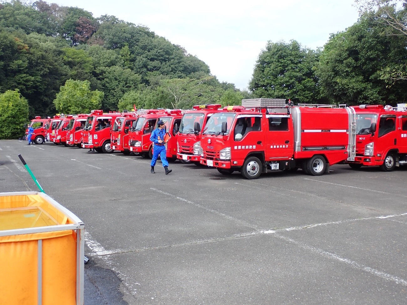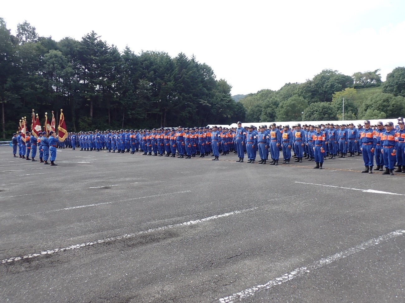 災害に備え、日頃の訓練で培った消防団員の雄姿に熱い声援をお願いします。